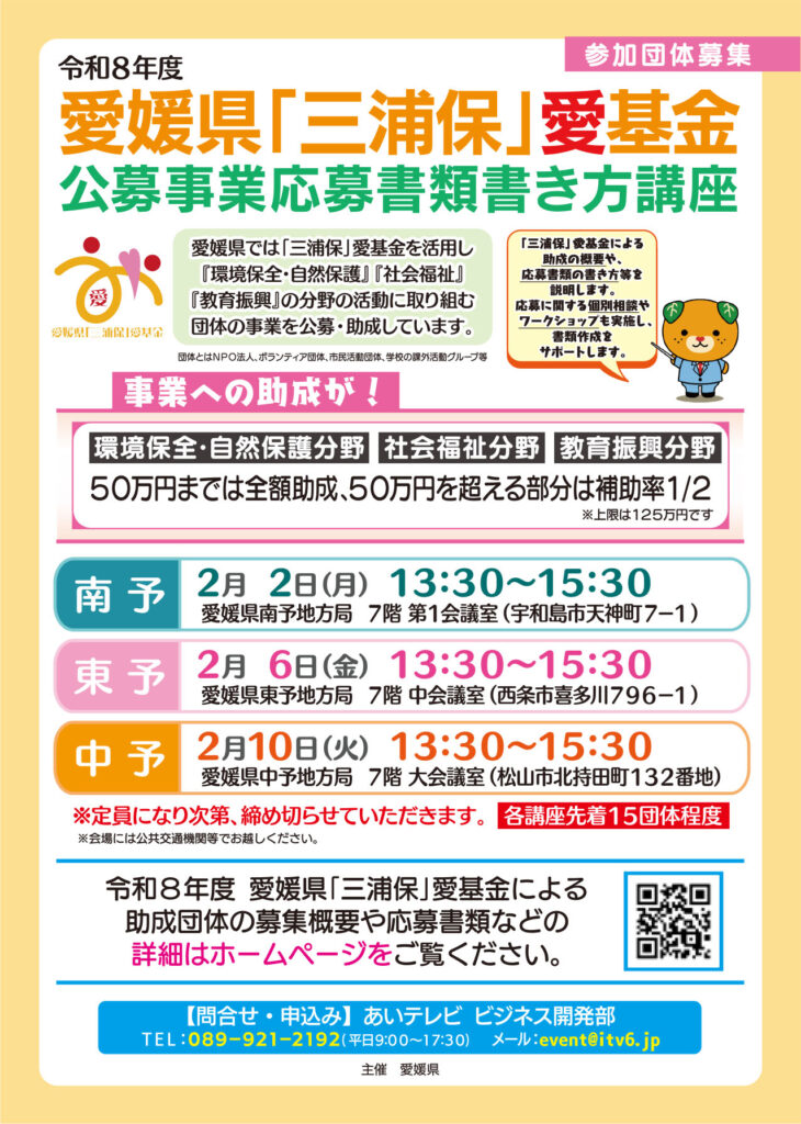 令和8年愛媛県「三浦保」愛基金 公募事業応募書類書き方講座の募集を開始します。