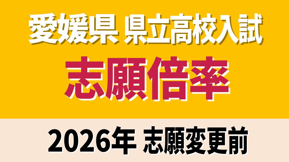 愛媛県立高校入試2026年 一般入試・変更前の志願倍率 松山東0.98倍 松山南1.10倍 松山北1.22倍 今治西0.96倍 全体は0.90倍【全高校・全学科掲載】 -