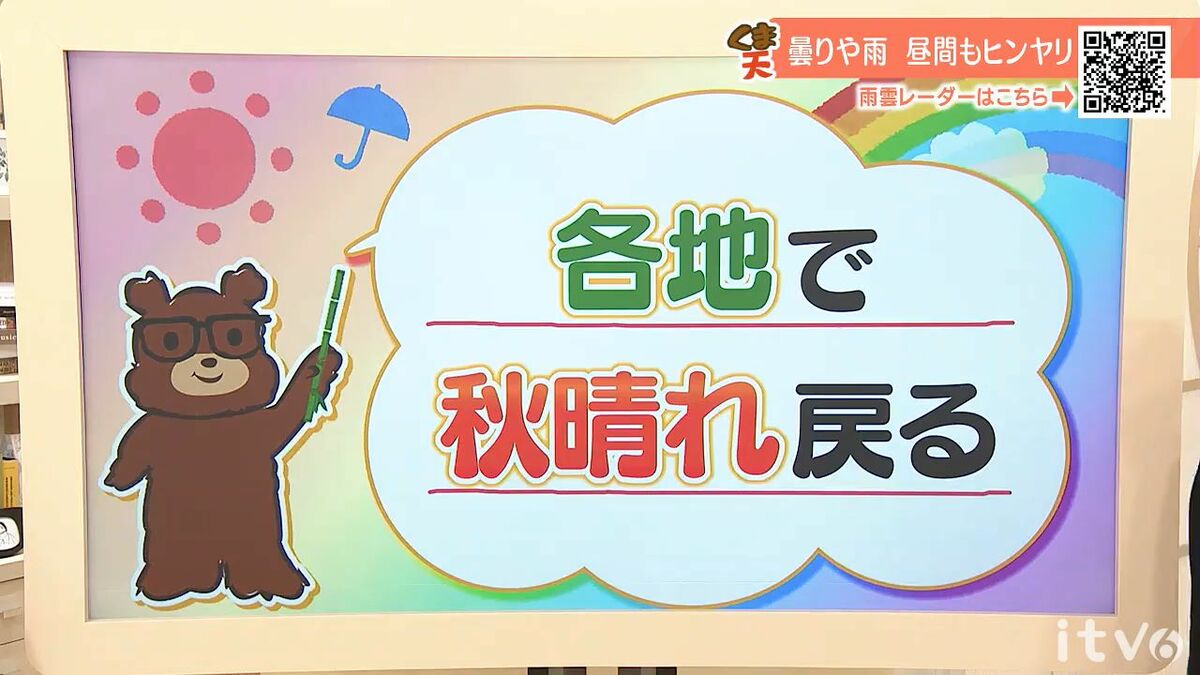 気象予報士のくま天が解説 14日(金)の愛媛は高気圧に覆われ各地で秋晴れが戻り最高気温は20度超の予想 -