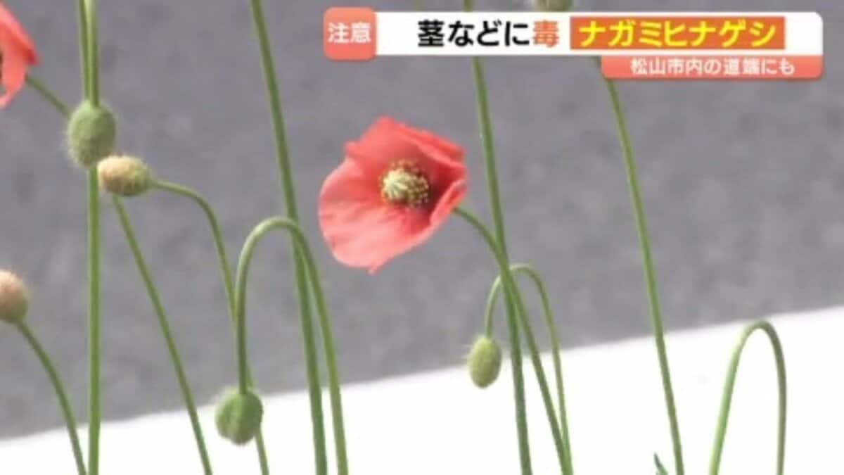 国道沿いの道端にケシ科の植物「ナガミヒナゲシ」 違法でないものの触るとかぶれる恐れも「ちょっと怖いなと思います」 愛媛・松山市 -