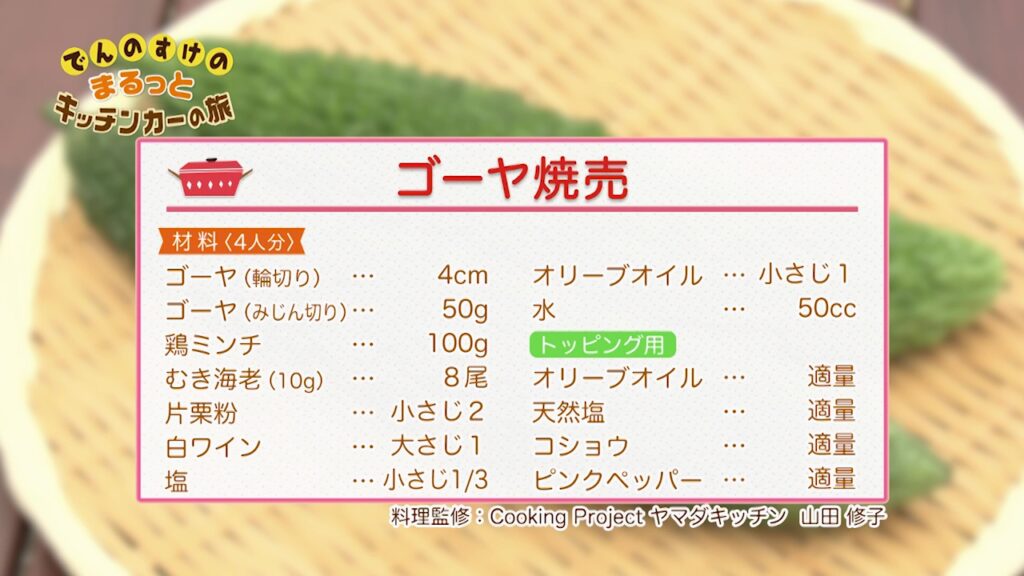 1. ゴーヤは5㎜8枚の輪切りにし、種を取り除く。