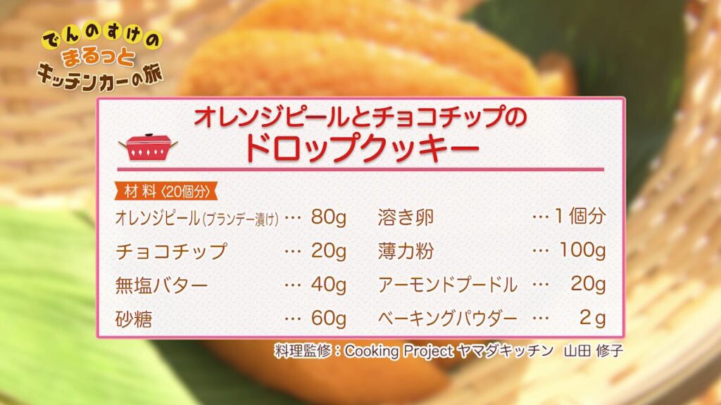 2. 薄力粉・アーモンドプードル・ベーキングパウダーを加え混ぜ、まだ粉っぽさが残っているうちにオレンジピールとチョコチップを加える。
