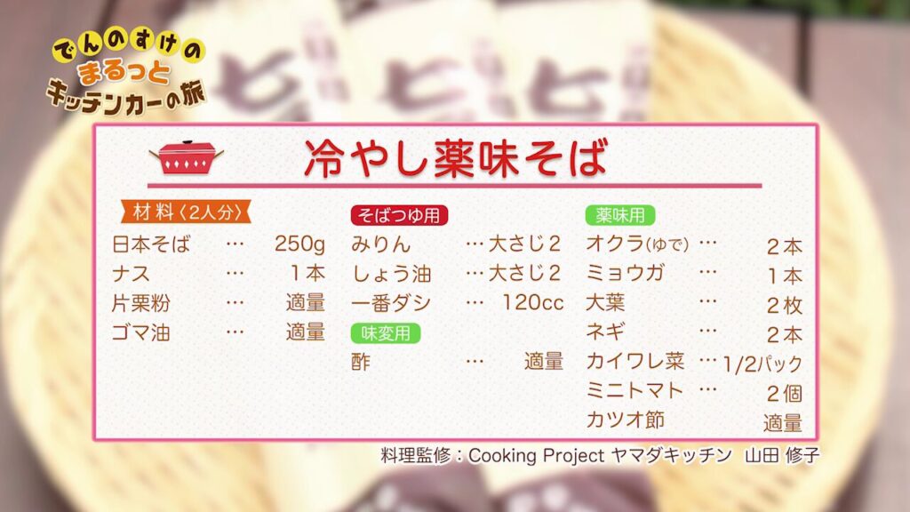 冷やし薬味そば 2025年5月10日 材料 作り方 そばつゆ用のみりん、しょう油、一番ダシはさっと煮たてておく。 ナスは縦半分に切り、斜めスライスし、ビニール袋に片栗粉と共に入れまぶす。 フライパンに多めのごま油を温め、②を揚げ焼きする。 湯を沸かし蕎麦を茹で、冷水にさらし、皿に盛る。 蕎麦の上に、茄子・オクラ・大葉・葱・かいわれ菜・ミニトマト・かつおぶしをのせる。 食べる前に、そばつゆを好みの量かけて完成。 【ポイント】 味変で酢をかけても良い