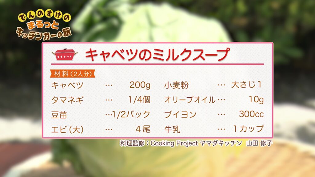 キャベツのミルクスープ 2025年5月31日 材料 作り方 処理した海老に小麦粉をまぶす。 キャベツを一口大に切る。 玉葱はスライスする。 豆苗を3cmくらいに切る・ キャベツ・玉葱・豆苗をオリーブオイルでさっと炒め、①を加え、粉っぽさがなくなったらブイヨン・牛乳を加え混ぜながら10分ほど煮る。 塩・胡椒で味を調え、器に盛る。