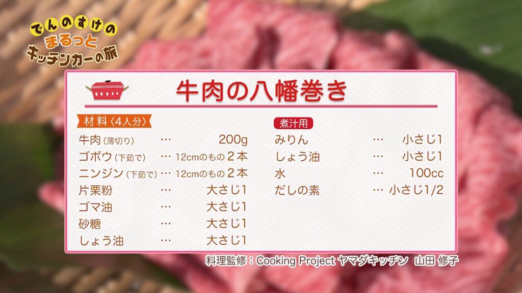 3. 牛肉を広げ、①②をしっかり巻き、片栗粉をまぶし、ごま油で表面をゆっくり中火で焼く。(鍋底火力安定)