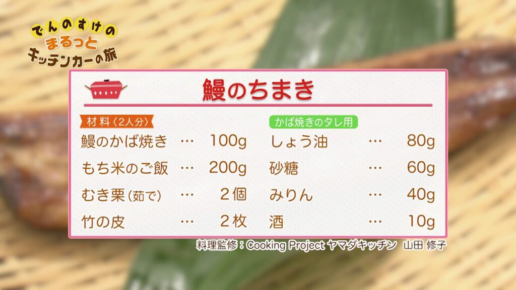 鰻のちまき 2024年11月9日 材料 作り方 かば焼きのタレ用材料を小鍋に合わせ、沸騰させて、ねかせておく。 もち米のご飯に、①を大さじ2杯程度混ぜ合わせる。 竹の皮を水で濡らす。 竹の皮に、②50g・茹でむき栗・鰻のかば焼き50g・②50gの順で入れ、三角に包む。(2個) 蒸気のあがった蒸し器に入れ、10~20分強火で蒸す。
