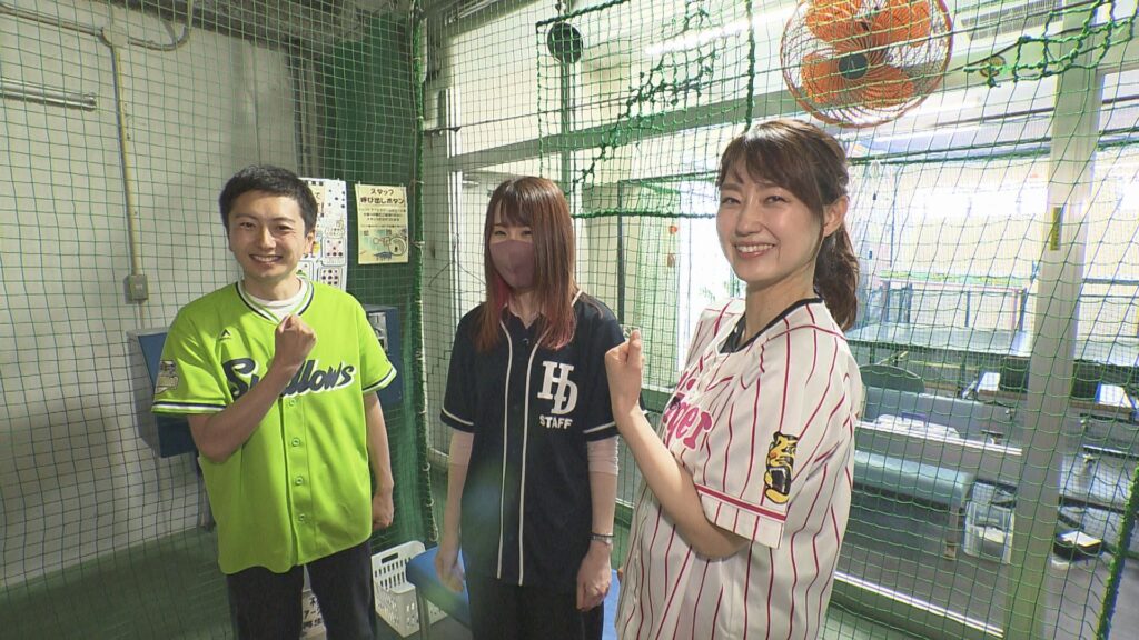 バッティング対決では、野球初心者の2人が球速200㎞を体験しました。