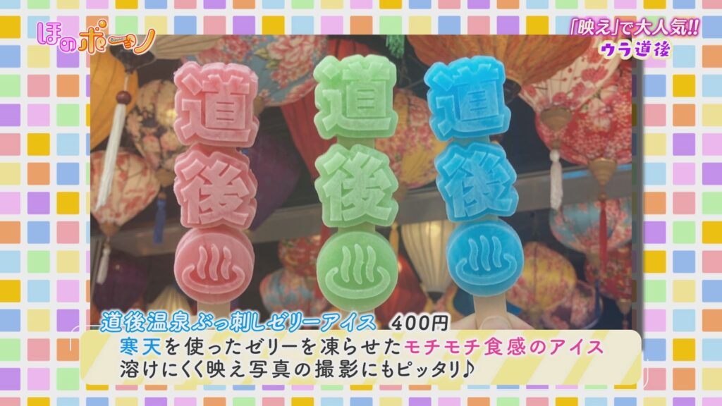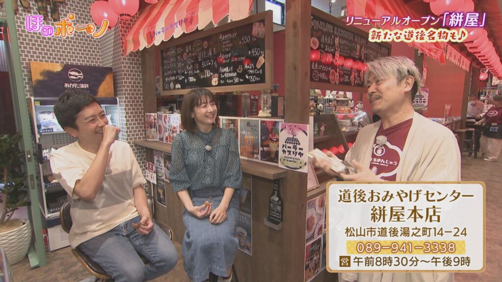 レトロも♪”NEW”も♪ 今アツい!!道後注目スポット 2024年7月5日 7月11日の全館営業再開に向け注目が集まる道後温泉本館…。 今回は、松山市道後エリアで、岩下・山下アナウンサーがおすすめスポットを紹介します。 大正ロマンをコンセプトに全面リニューアルした土産物店には、新たな道後名物を目指す和菓子や、四国初・綿菓子の自動販売機が登場!! また「映える」とSNSで人気の遊技場では、射的で2人が真剣勝負し「レトロで新しい」温泉街の楽しみ方を満喫します。 道後おみやげセンター 絣屋本店 愛媛の食卓1970 道後温泉遊技場 ウラ道後