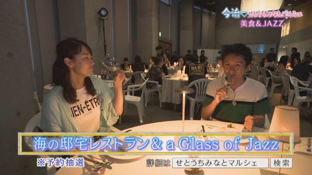 今治♡せとうちみなとバルシェ 2024年7月12日 岩下アナと岡田アナが、今治港周辺で開催される「せとうちみなとバルシェ」を満喫します。 今治グルメで乾杯した後は、美食と生演奏のJAZZに酔いしれる大人時間を堪能し、今年から始まった今治港発着のサンセットクルーズでは、岩下アナがしまなみならではの景色に感動!