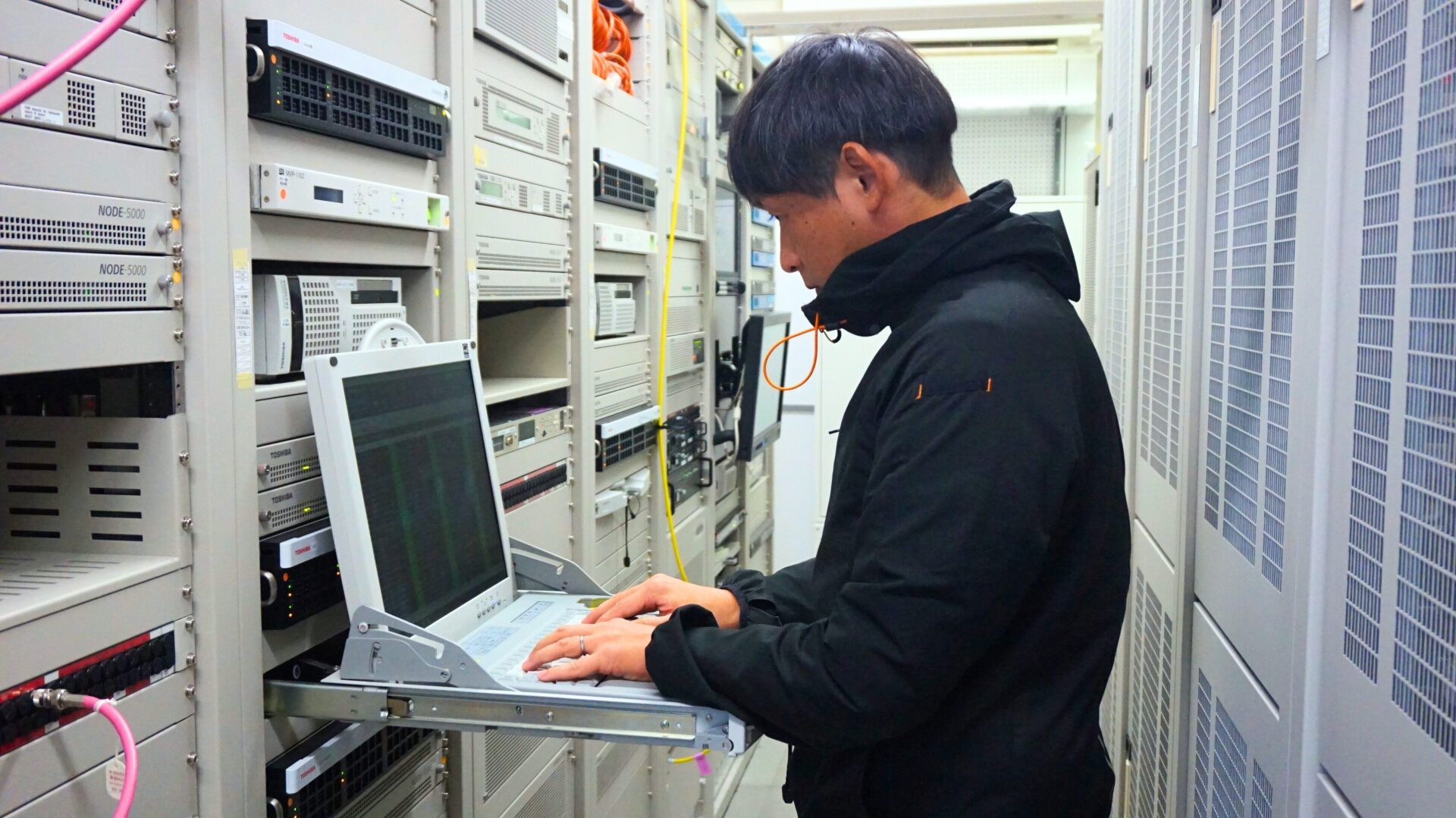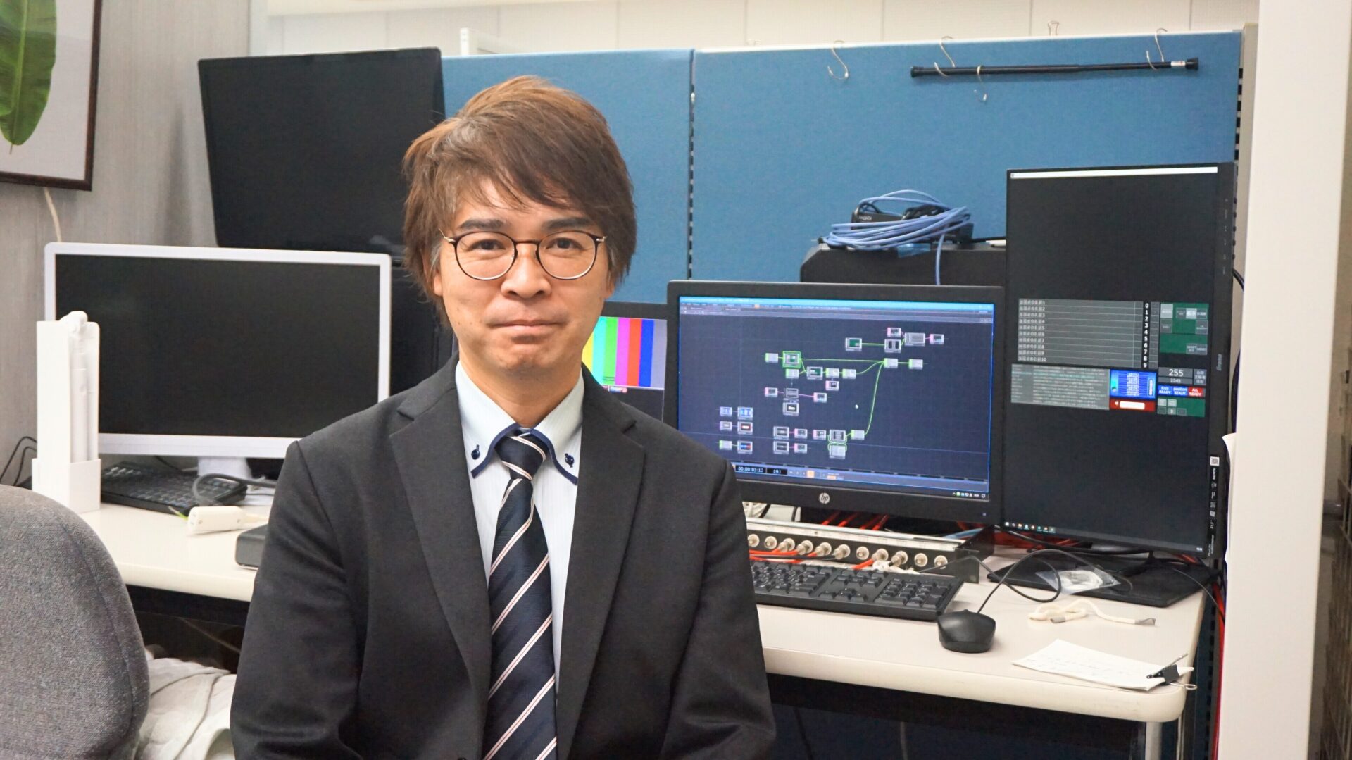 日常から非常時まで、あいテレビのすべてを支える堅牢な体制作りをしています。設備の設計、構築、定期メンテナンスを行い会社の安定を守っています。